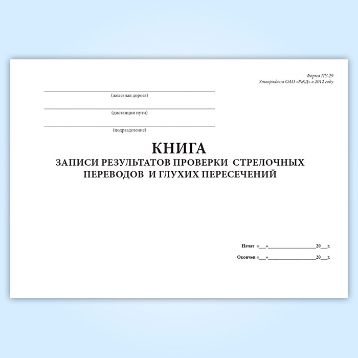Книга записи результатов проверки стрелочных переводов и глухих пересечений (форма ПУ-29) в Сургуте купить