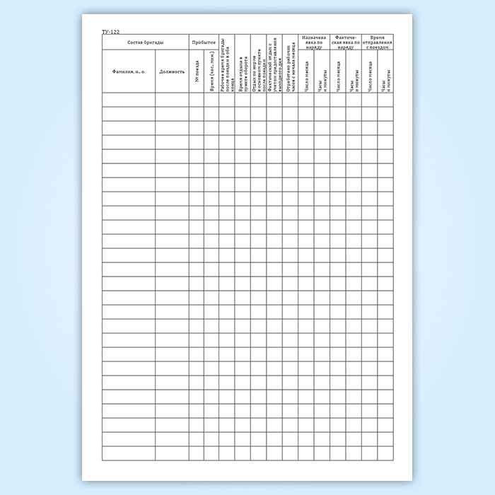 Книга нарядов локомотивных бригад и учета нарушений (срывов) безвызывной системы явок локомотивных бригад на работу и именных расписаний (форма ТУ-122) в Сургуте купить