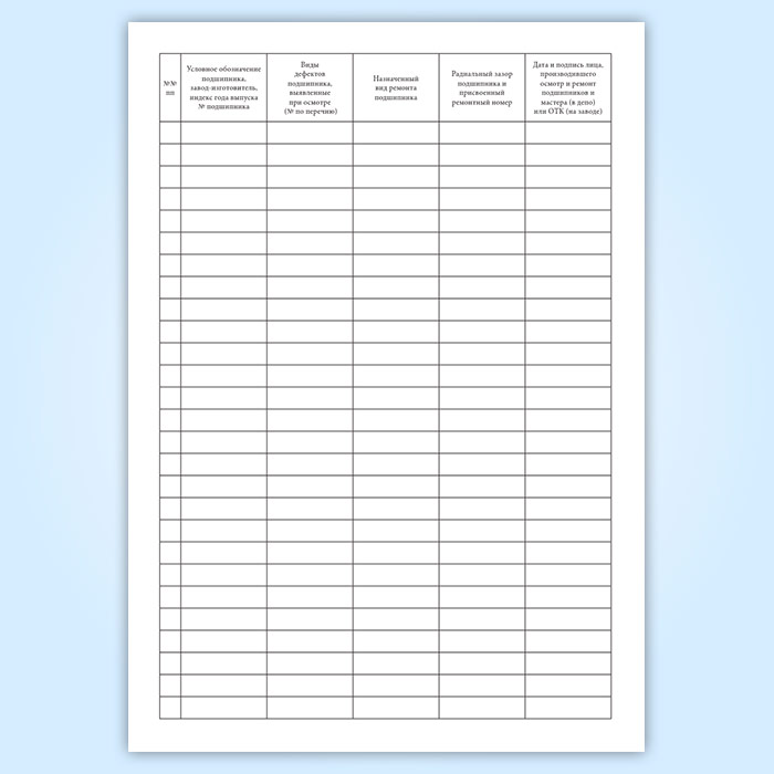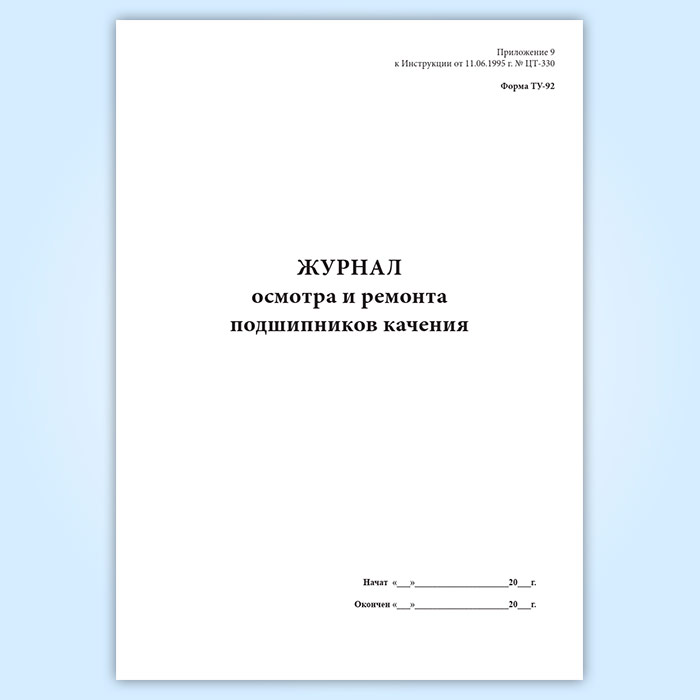Журнал осмотра и ремонта подшипников качения (форма ТУ-92) в Сургуте купить