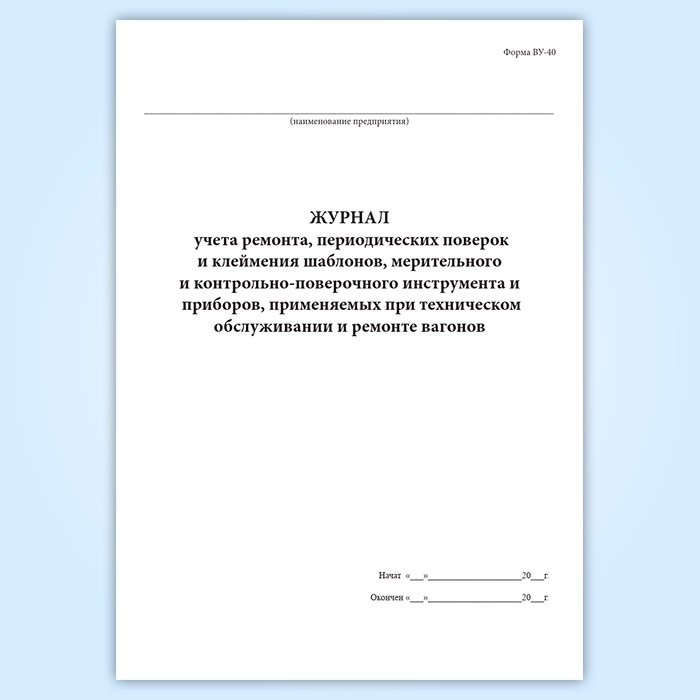 Журнал учета ремонта, периодических поверок и клеймения шаблонов, мерительного и контрольно-поверочного инструмента и приборов, применяемых при техническом обслуживании и ремонте вагонов (форма ВУ-40) в Сургуте купить