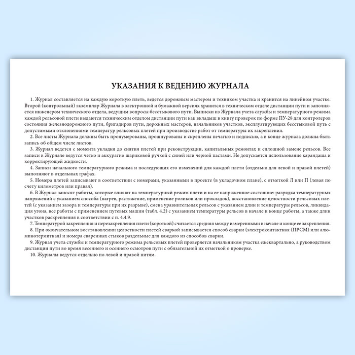Журнал учета службы и температурного режима рельсовых плетей в Сургуте купить