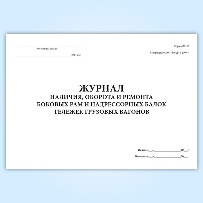 Журнал учета наличия, оборот и ремонт боковых рам и надрессорных балок тележек грузовых вагонов (форма ВУ-42) в Сургуте купить