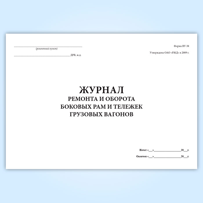 Журнал ремонта и оборота боковых рам и тележек грузовых вагонов (форма ВУ-38) в Сургуте купить