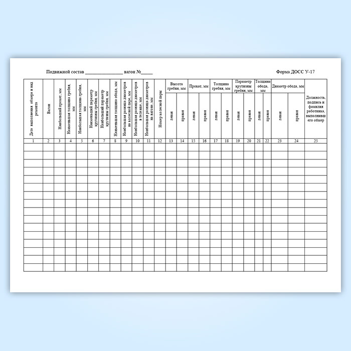 Книга состояния колесных пар скоростных/высокоскоростных электропоездов (форма ДОСС У-17) в Сургуте купить