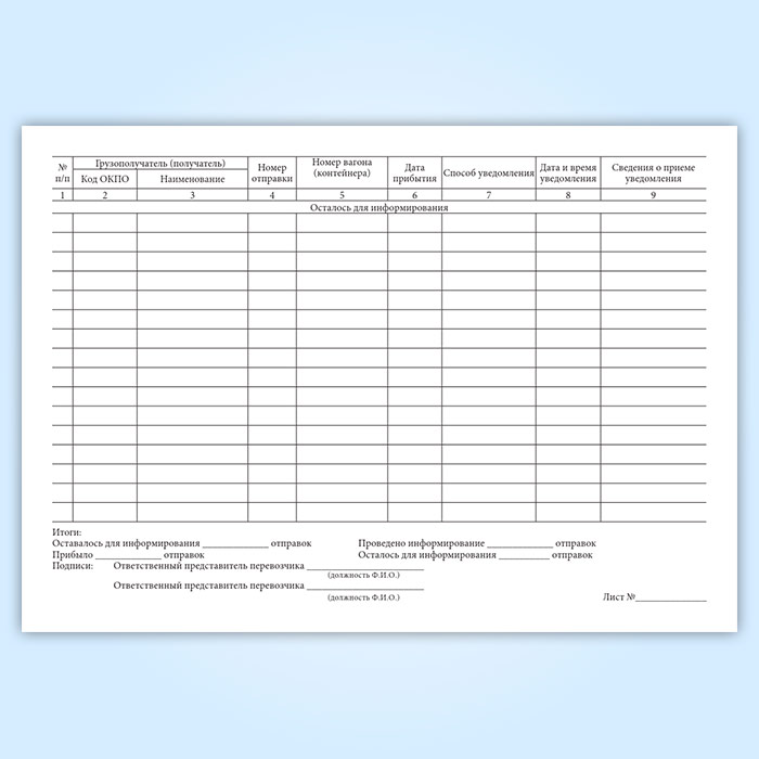 Книга уведомления о прибытии груза, порожнего грузового вагона (форма ГУ-6ВЦ/Э) в Сургуте купить