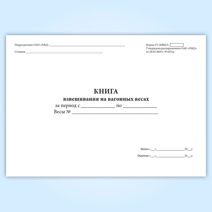 Книга взвешивания на вагонных весах (форма ГУ-36ВЦ/Э) в Сургуте купить