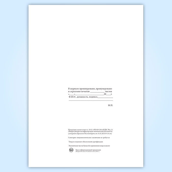 Вы получаете печатную продукцию прошнурованной и c местом для вашей печати в соответствии с действующими нормативными документами: