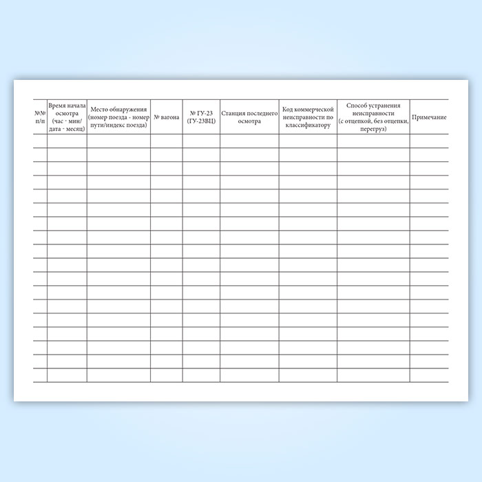 Книга регистрации коммерческих неисправностей вагонов в поездах в пунктах коммерческого осмотра (форма ГУ-98ВЦ) в Сургуте купить