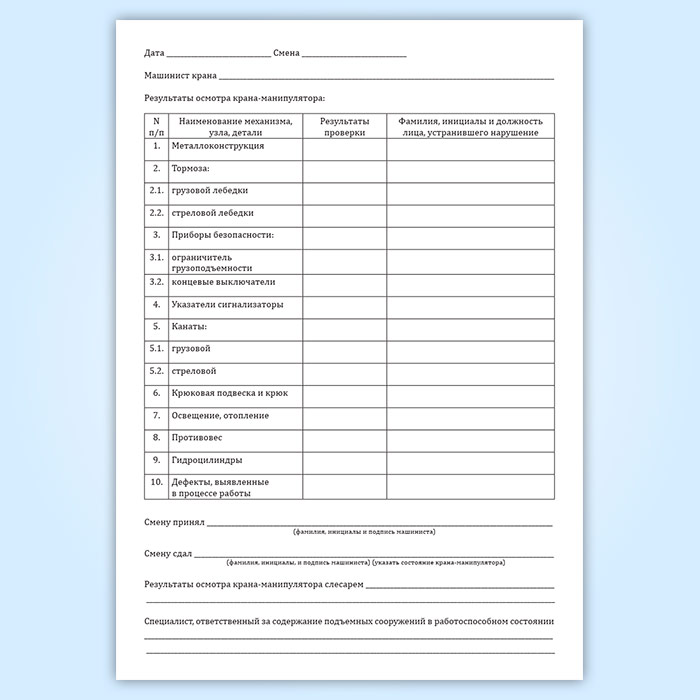 Вахтенный журнал машиниста грузоподъемного крана-манипулятора в Сургуте купить