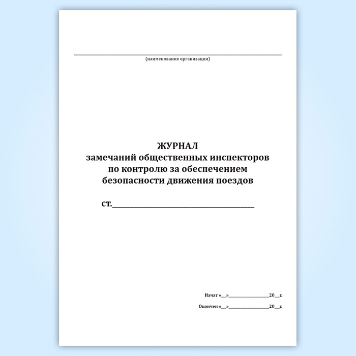 Журнал замечаний общественных инспекторов по контролю за обеспечением безопасности движения поездов в Сургуте купить
