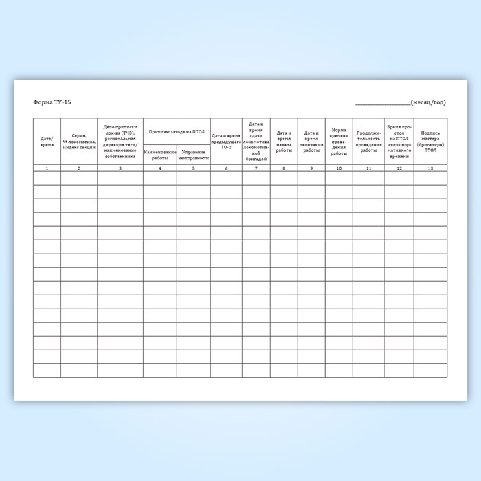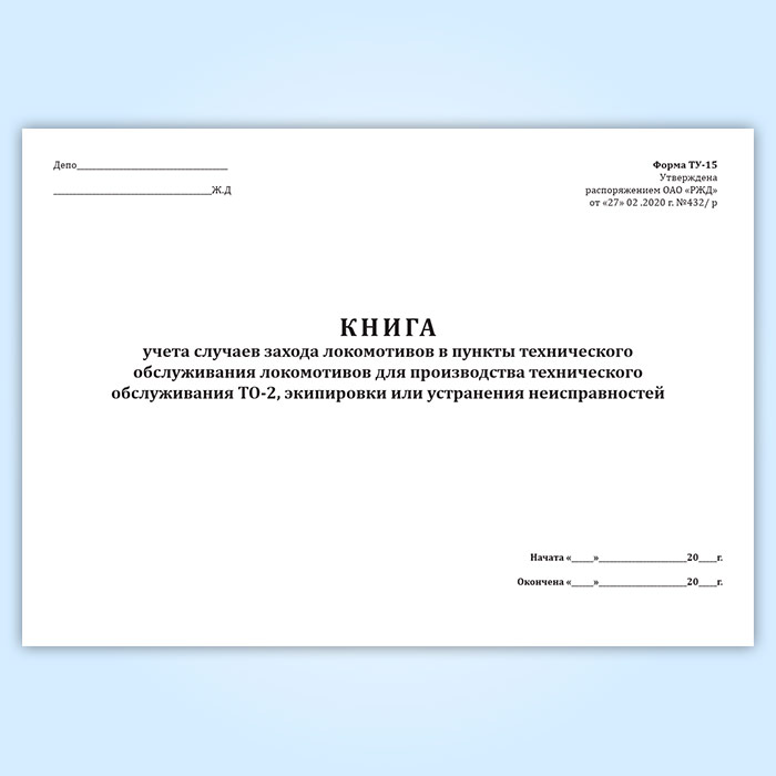 Книга учета случаев захода локомотивов в пункты технического обслуживания локомотивов для производства технического обслуживания ТО-2, экипировки или устранения неисправностей (форма ТУ-15) в Сургуте купить