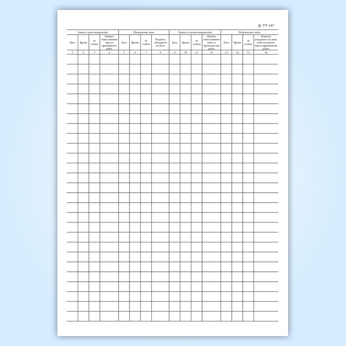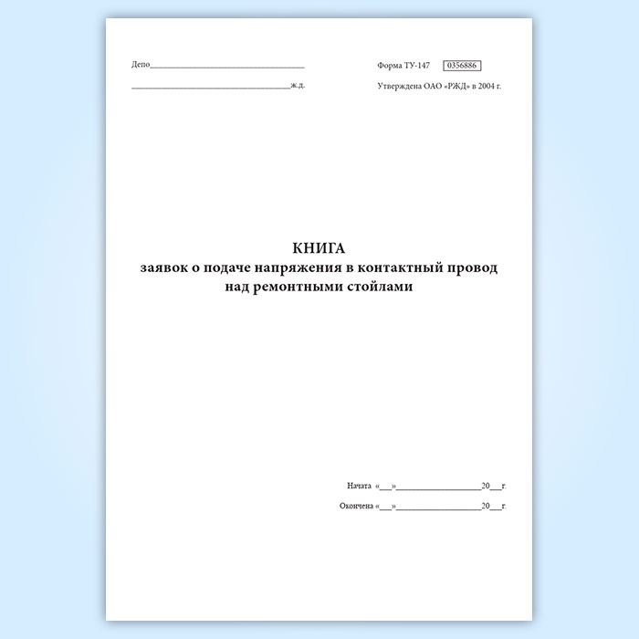 Книга заявок о подаче напряжения в контактный провод над ремонтными стойлами (форма ТУ-147) в Сургуте купить