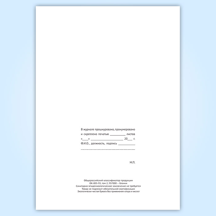 Вы получаете печатную продукцию прошнурованной и c местом для вашей печати в соответствии с действующими нормативными документами: