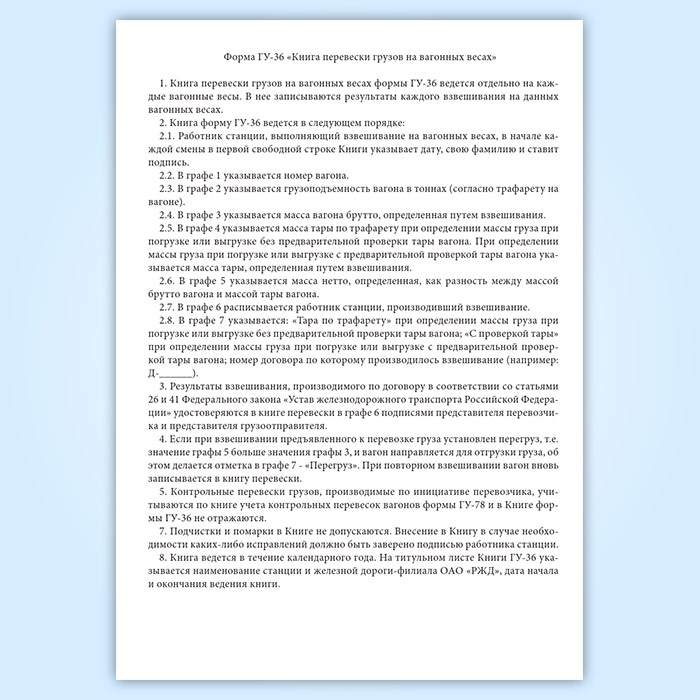 Книга перевески грузов на вагонных весах (форма ГУ-36) в Сургуте купить