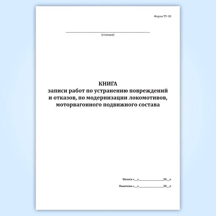 Книга записи работ по устранению повреждений и отказов, по модернизации локомотивов, моторвагонного подвижного состава (форма ТУ-30) в Сургуте купить