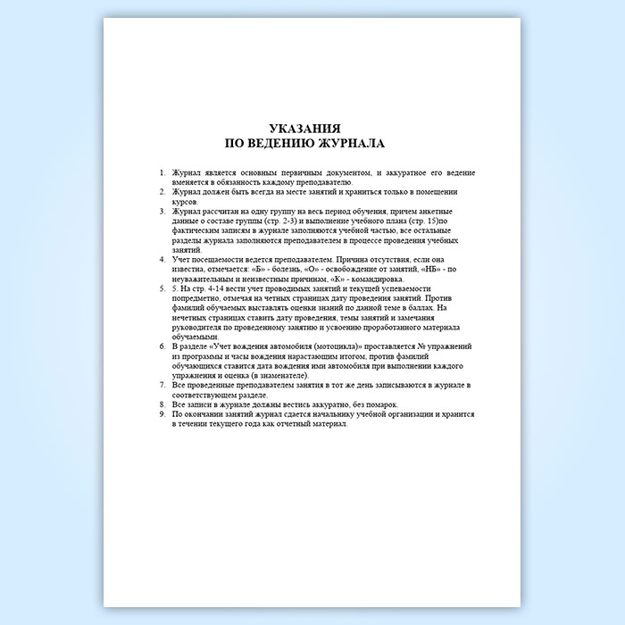 Журнал учета занятий по подготовке водителей транспортных средств категории «В» в Сургуте купить