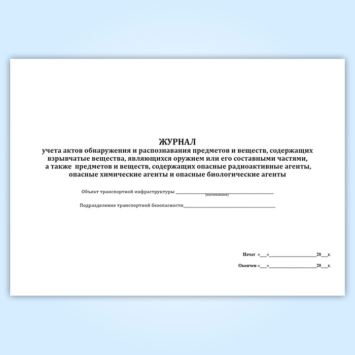 Журнал учета актов обнаружения и распознавания предметов и веществ, содержащих взрывчатые вещества, являющихся оружием или его составными частями, а также предметов и веществ, содержащих опасные радиоактивные агенты, опасные химические агенты и опасные биологические агенты в Сургуте купить