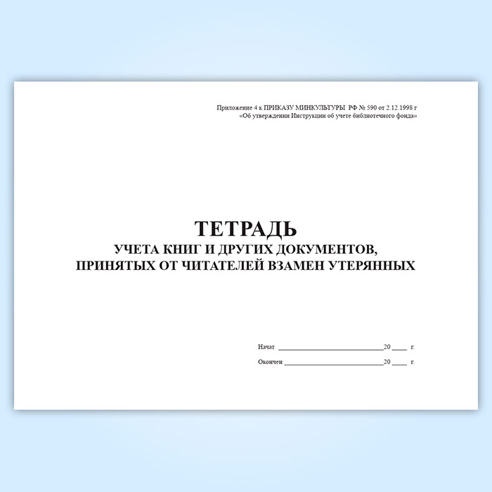 Тетрадь учета книг и других документов, принятых от читателей взамен утерянных в Сургуте купить