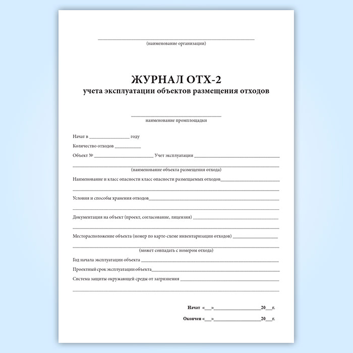 Журнал учета эксплуатации объектов размещения отходов ОТХ-2 в Сургуте купить