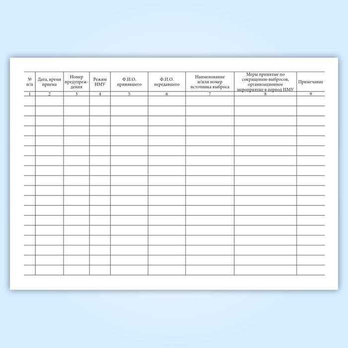 Журнал регистрации мероприятий по сокращению выбросов в период НМУ в Сургуте купить
