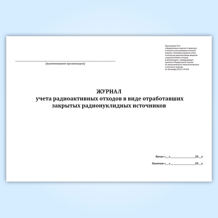 Журнал учета радиоактивных отходов в виде отработавших закрытых радионуклидных источников в Сургуте купить