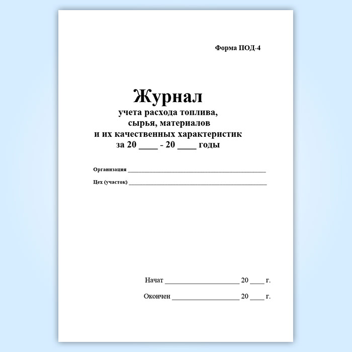 Журнал учета расхода топлива, сырья, материалов и их качественных характеристик (форма ПОД-4) в Сургуте купить