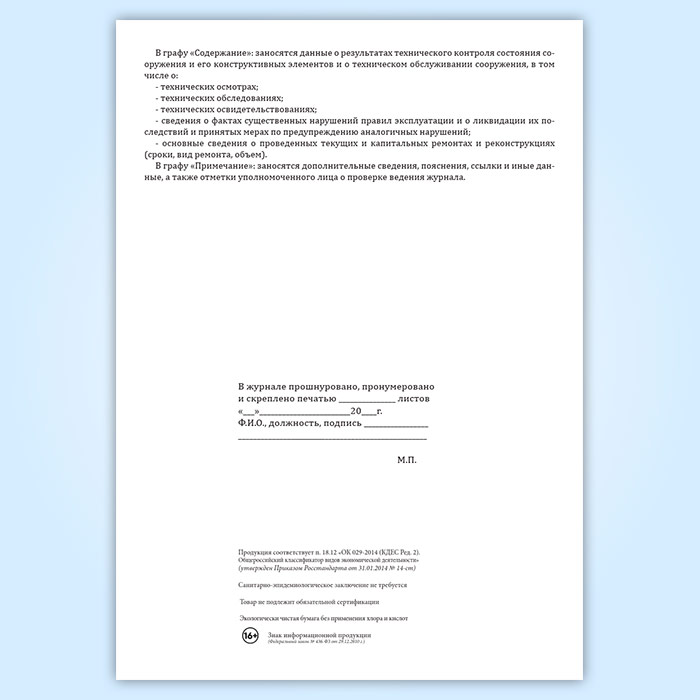 Технический журнал по эксплуатации гидротехнического сооружения в Сургуте купить