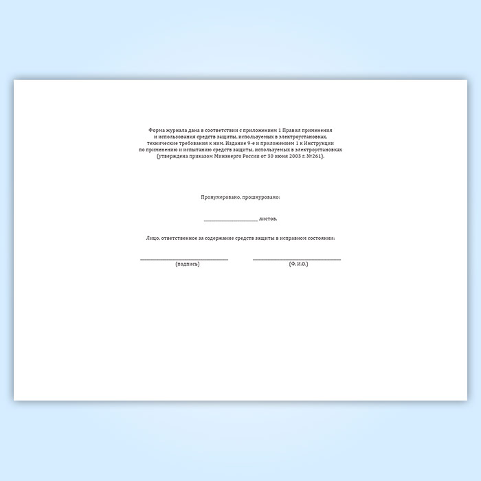 Журнал учета и содержания средств защиты (используемых в электроустановках) в Сургуте купить