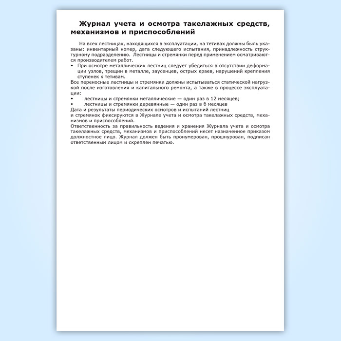 Журнал учета и осмотра такелажных средств, механизмов и приспособлений в Сургуте купить