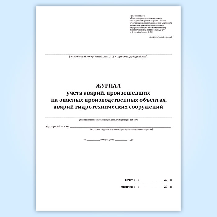 Журнал учета аварий, происшедших на опасных производственных объектах, объектах энергетики и гидросооружениях в Сургуте купить