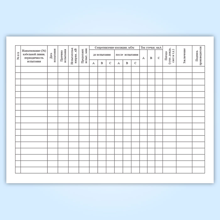 Журнал испытаний кабельных линий с повышенным напряжением (форма № 20-Э) в Сургуте купить