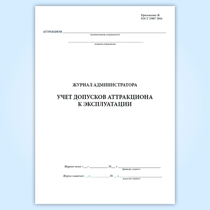Журнал администратора. Учет допусков аттракциона к эксплуатации в Сургуте купить