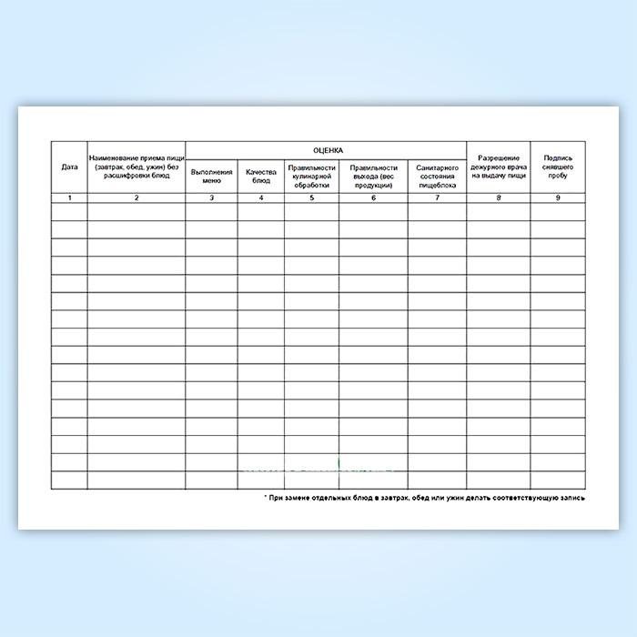 Журнал контроля за качеством готовой пищи (бракеражный журнал) в Сургуте купить