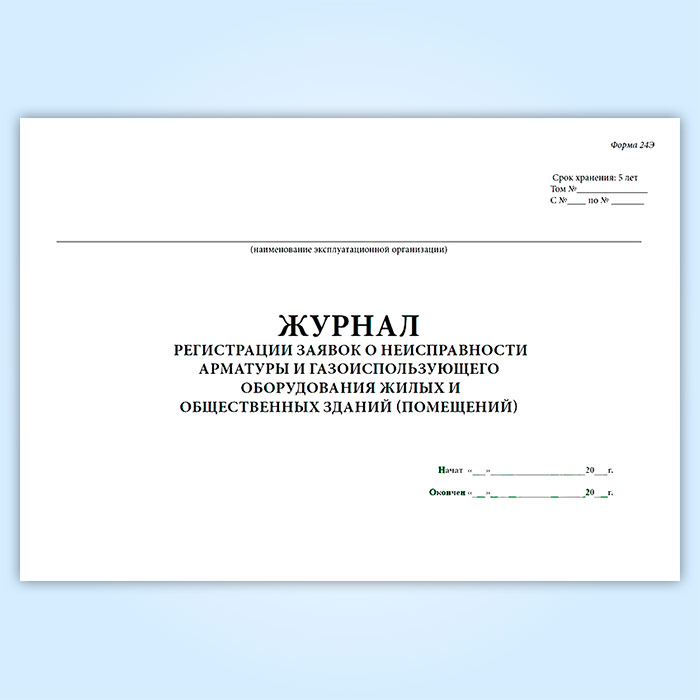 Журнал регистрации заявок о неисправности арматуры и газоиспользующего оборудования жилых и общественных зданий (помещений) (форма 24Э) в Сургуте купить