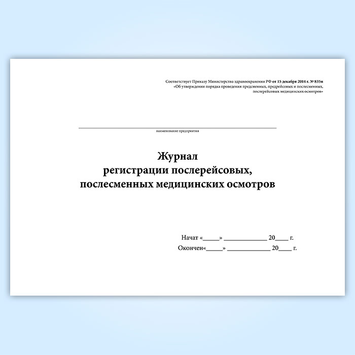 Журнал регистрации послерейсовых, послесменных медицинских осмотров в Сургуте купить