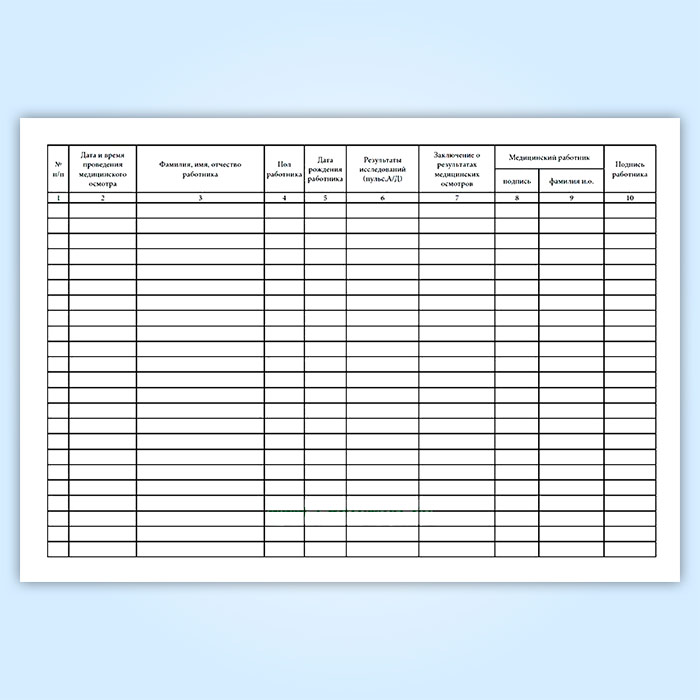 Журнал регистрации предрейсовых, предсменных медицинских осмотров (Приказ Минздрава РФ от 15 декабря 2014 г. N 835н) в Сургуте купить