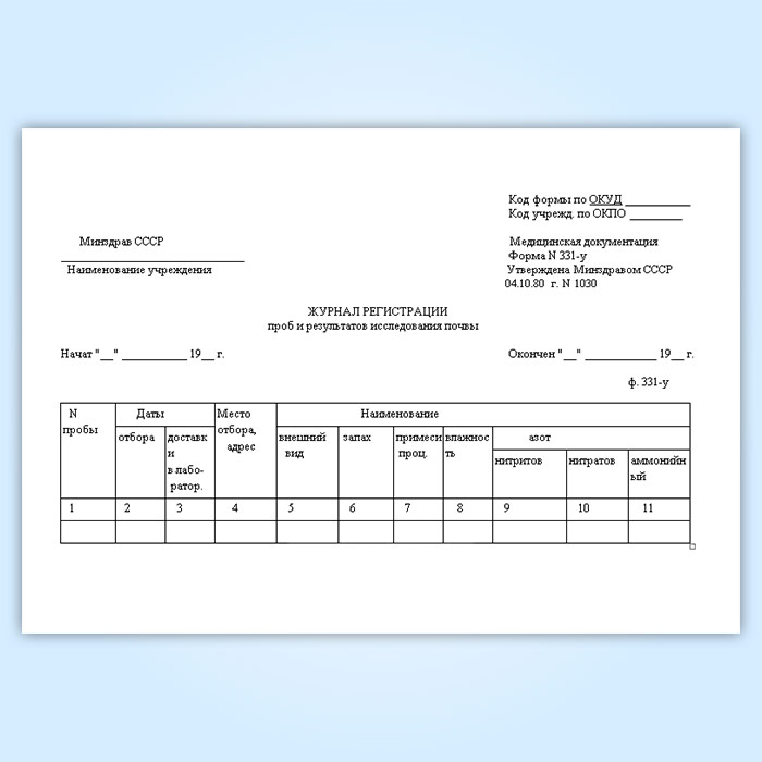 Журнал регистрации проб и результатов исследования почвы (форма № 331-у) в Сургуте купить