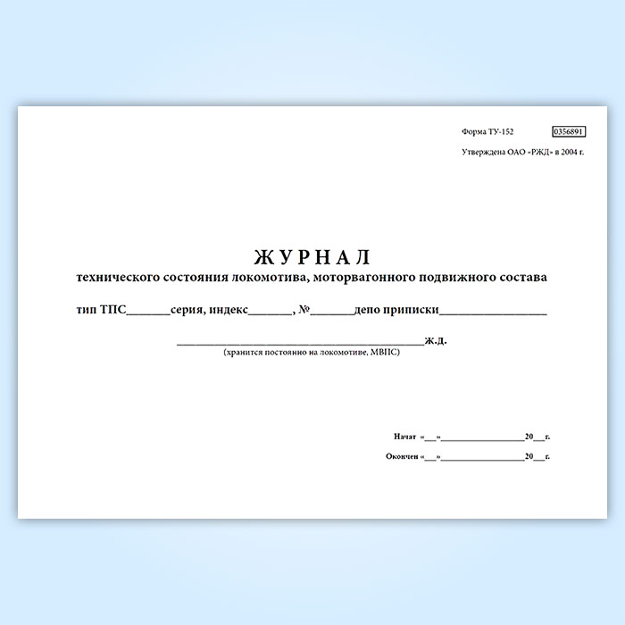 Журнал технического состояния локомотива, моторвагонного подвижного состава (форма № ТУ-152) в Сургуте купить