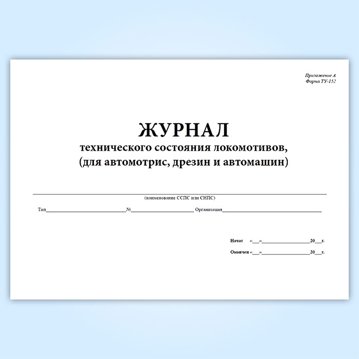Журнал технического состояния локомотивов (для автомотрис, дрезин и автомашин) (форма ТУ-152) в Сургуте купить