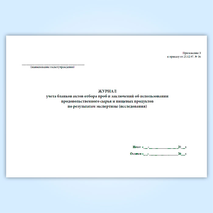Журнал учета бланков отбора проб и заключений об использовании продовольственного сырья и пищевых продуктов в Сургуте купить