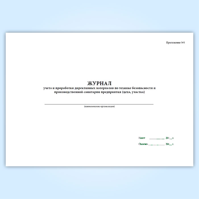 Журнал учета и проработки директивных материалов по технике безопасности и производственной санитарии предприятия (цеха, участка) в Сургуте купить
