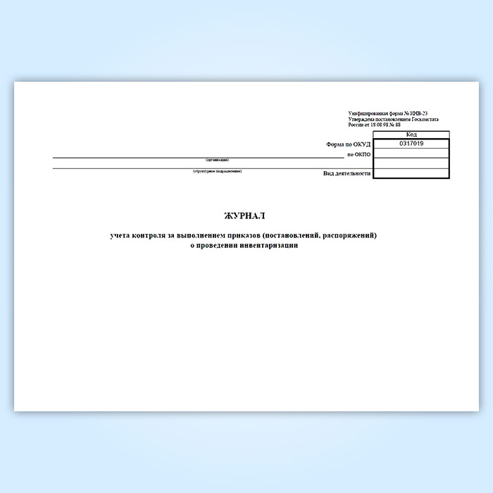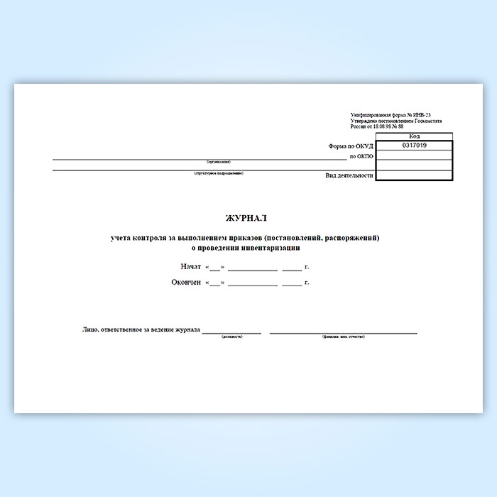 Журнал учета контроля за выполнением приказов (постановлений, распоряжений) о проведении инвентаризации (унифицированная форма ИНВ-23) в Сургуте купить