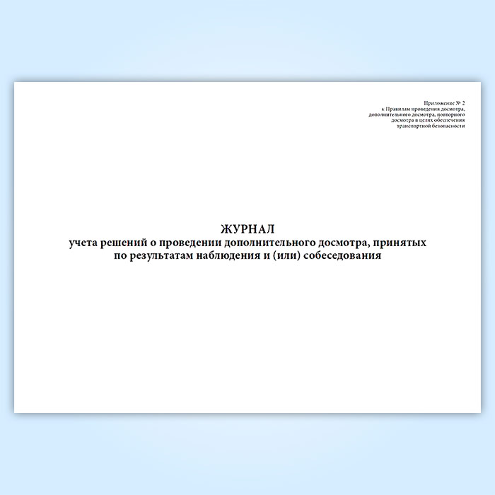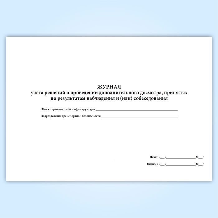 Журнал учета решений о проведении дополнительного досмотра, принятых по результатам наблюдения и (или) собеседования в Сургуте купить