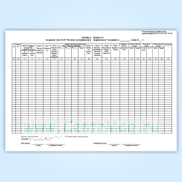 Журнал-ордер № 5 по кредиту счета № 60 «Расчеты с поставщиками и подрядчиками» (сводный) в Сургуте купить