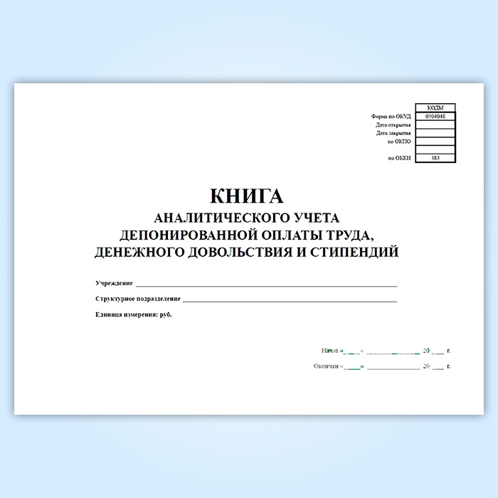 Книга аналитического учета депонированной заработной платы, денежного довольствия и стипендий (код формы 0504048) в Сургуте купить