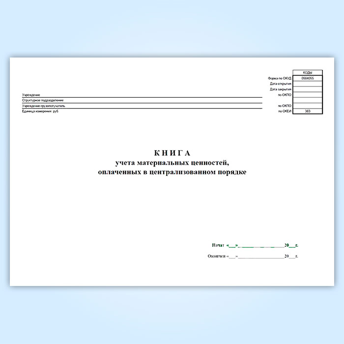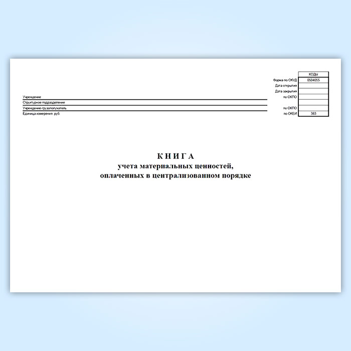 Книга учета материальных ценностей, оплаченных в централизованном порядке (код формы 0504055) в Сургуте купить