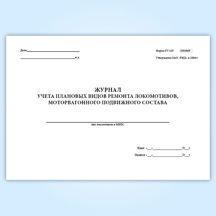 Книга учета плановых видов ремонта локомотивов, моторвагонного подвижного состава (форма ТУ-125) в Сургуте купить