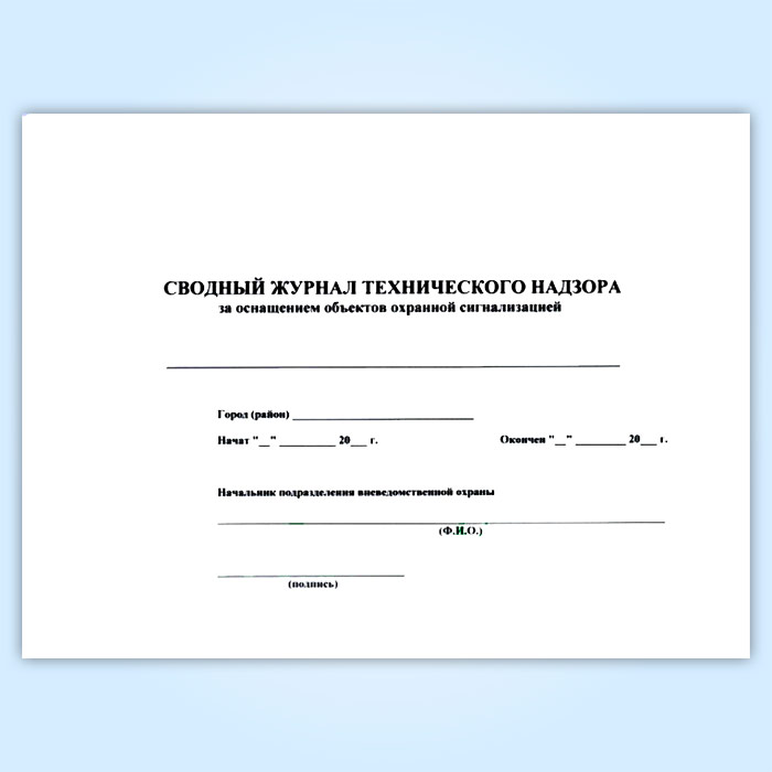 Сводный журнал технического надзора за оснащением объектов охранной сигнализацией в Сургуте купить