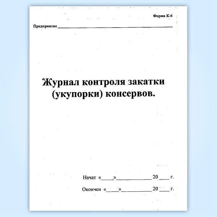 Журнал контроля закатки (укупорки) консервов (форма К-6) в Сургуте купить