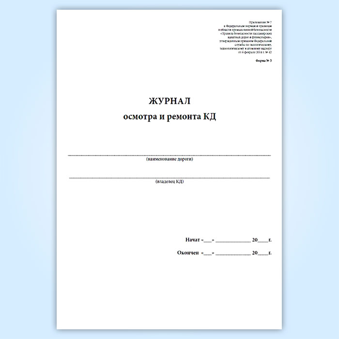 Журнал осмотра и ремонта канатной дороги. Натяжной канат к несущему канату (форма № 3) в Сургуте купить